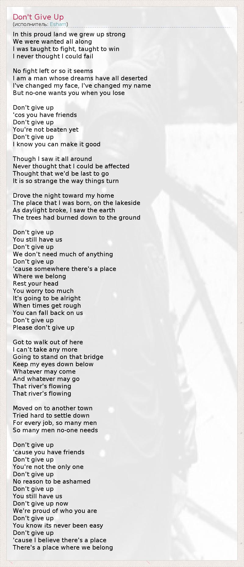 А как ты думаешь, о чем песня "Don't Give Up" ?