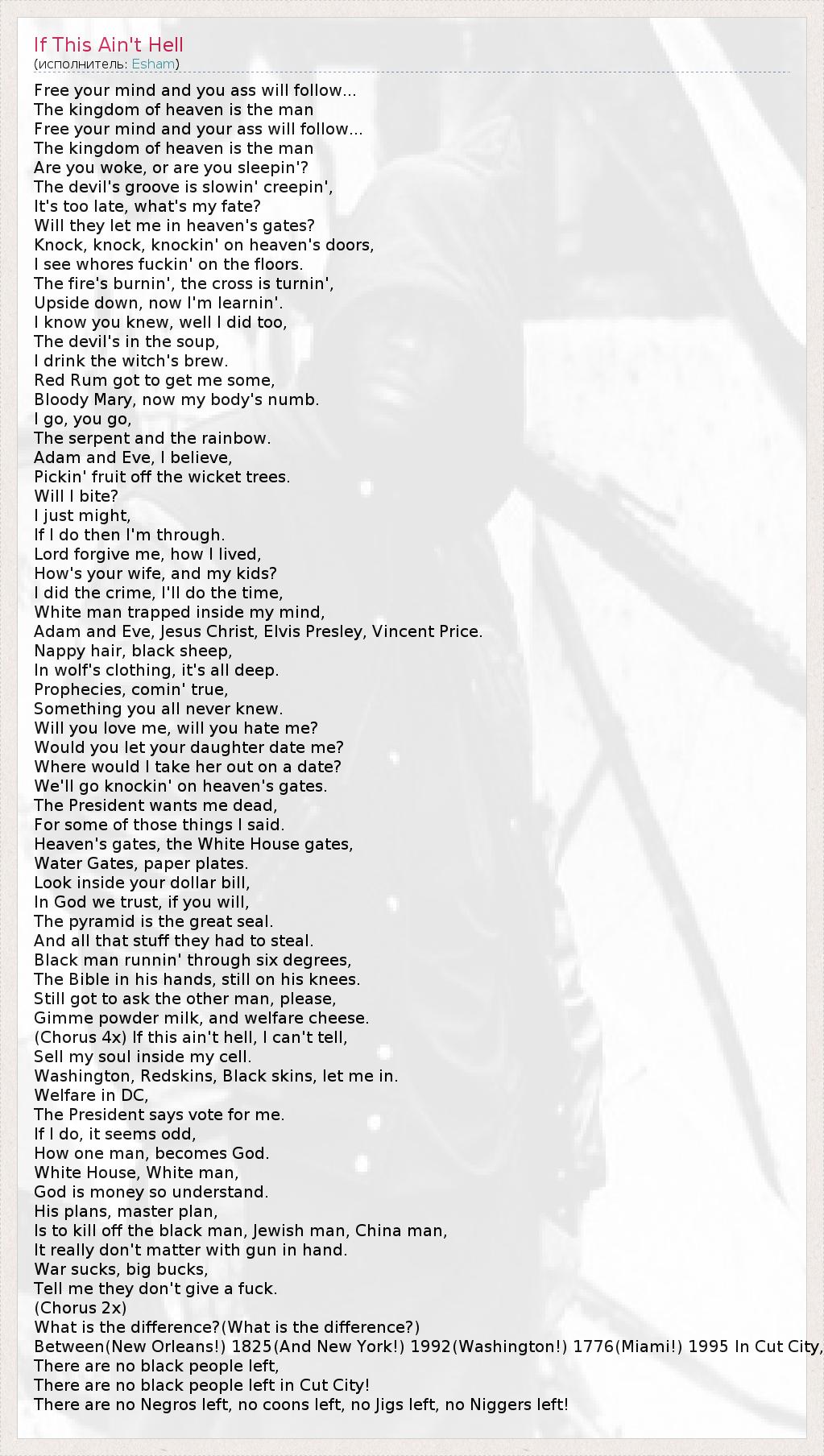 А как ты думаешь, о чем песня "If This Ain't Hell" ?