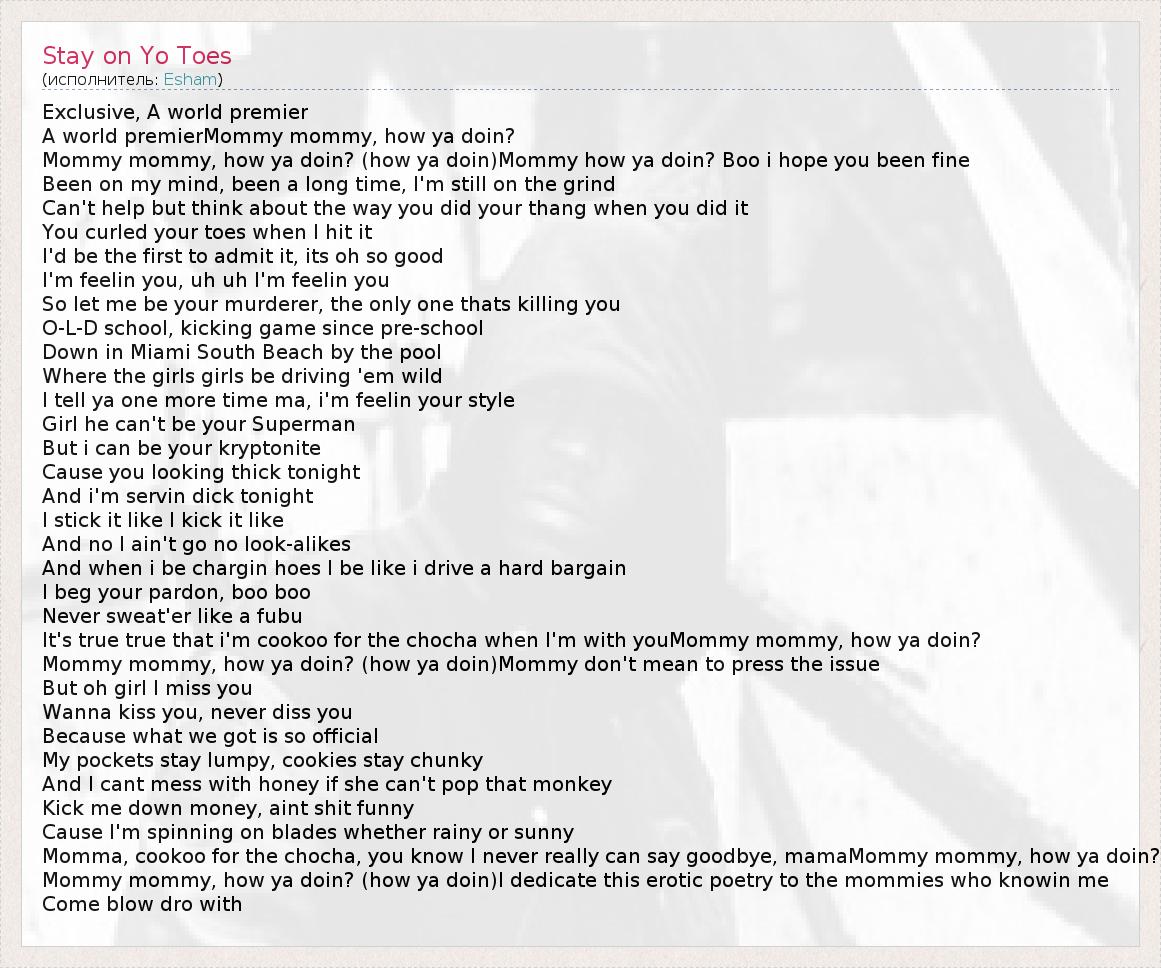 А как ты думаешь, о чем песня "Stay on Yo Toes" ?