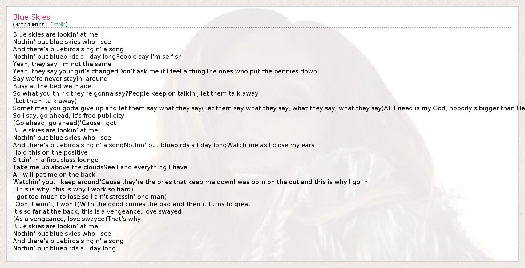 А как ты думаешь, о чем песня "Blue Skies" ?