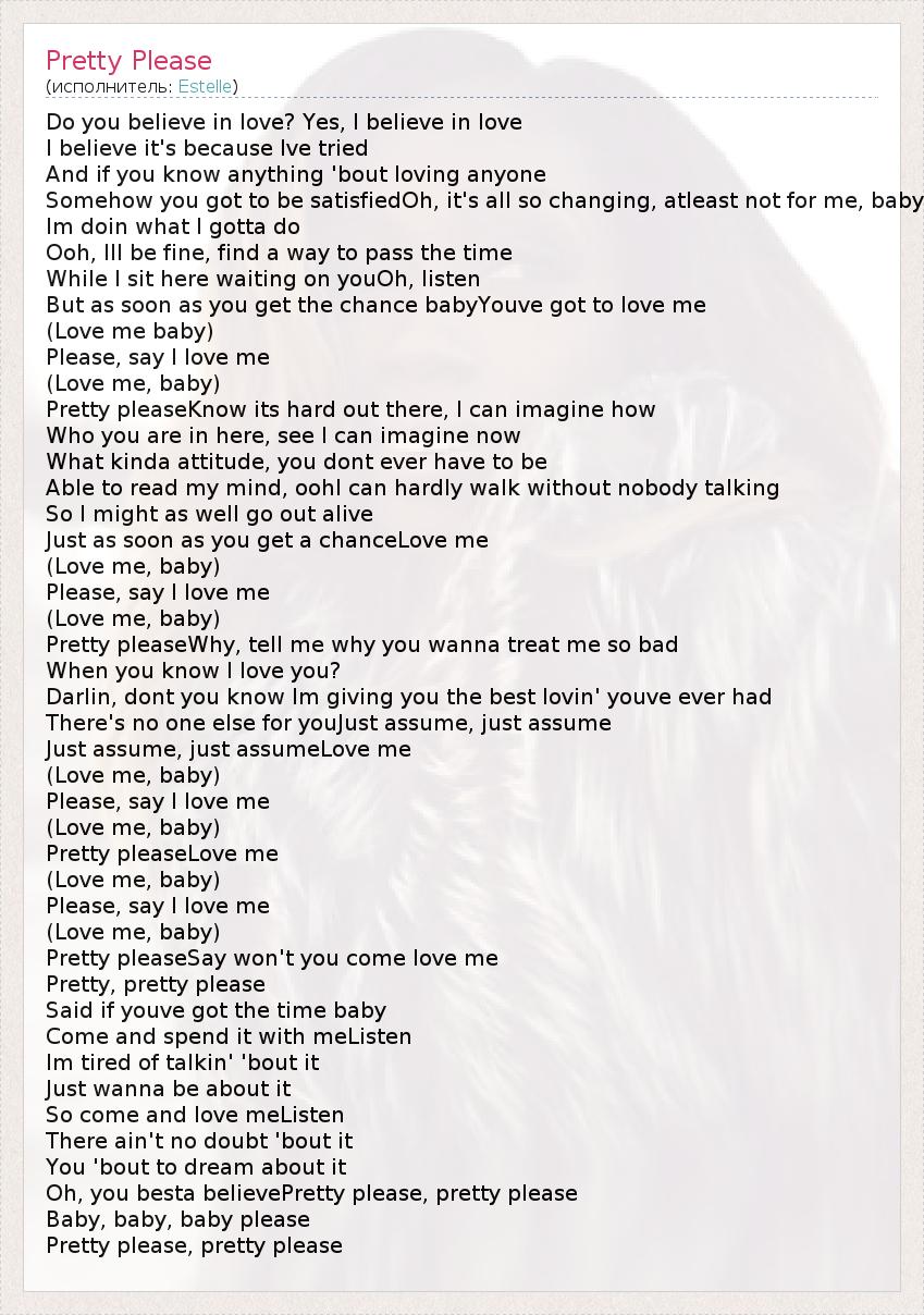 А как ты думаешь, о чем песня "Pretty Please" ?