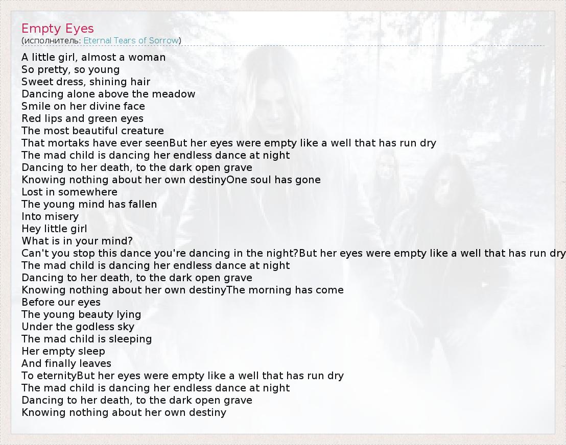 А как ты думаешь, о чем песня "Empty Eyes" ?