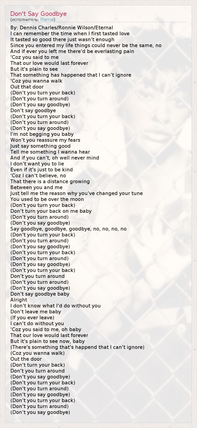 А как ты думаешь, о чем песня "Don't Say Goodbye" ?