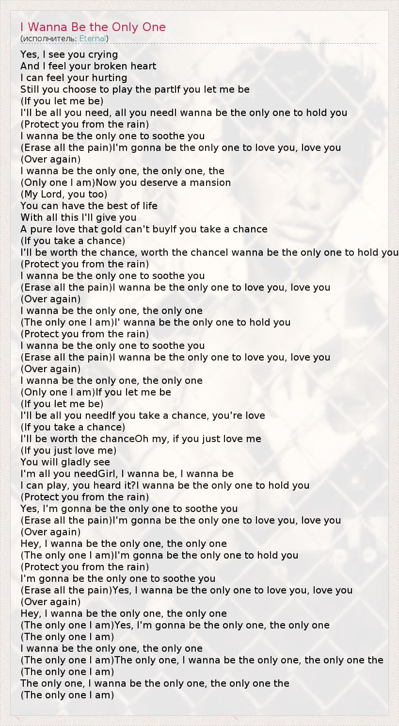 А как ты думаешь, о чем песня "I Wanna Be the Only One" ?