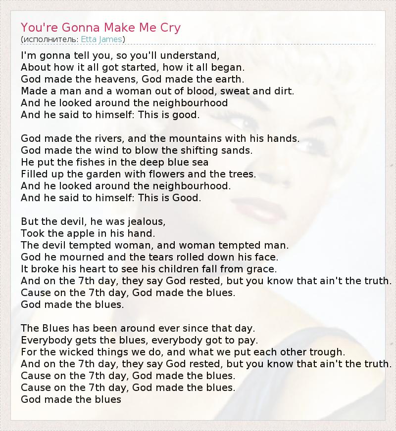 А как ты думаешь, о чем песня "You're Gonna Make Me Cry" ?
