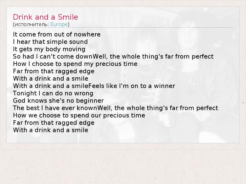 А как ты думаешь, о чем песня "Drink and a Smile" ?