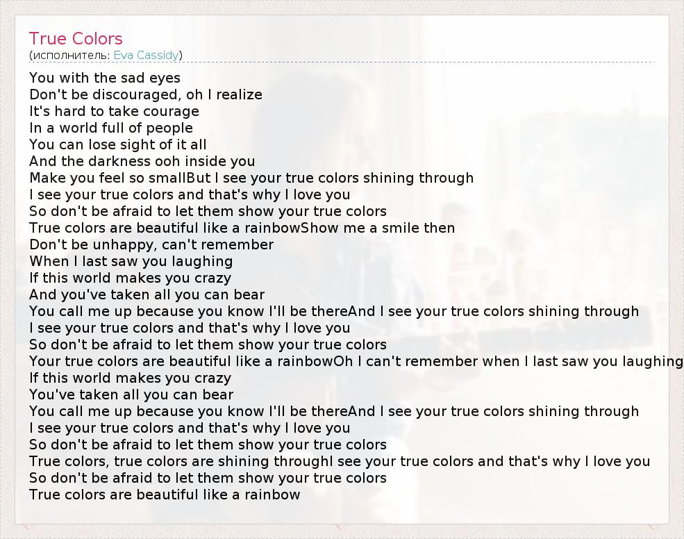 А как ты думаешь, о чем песня "True Colors" ?