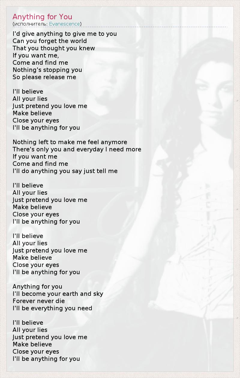 А как ты думаешь, о чем песня "Anything for You" ?