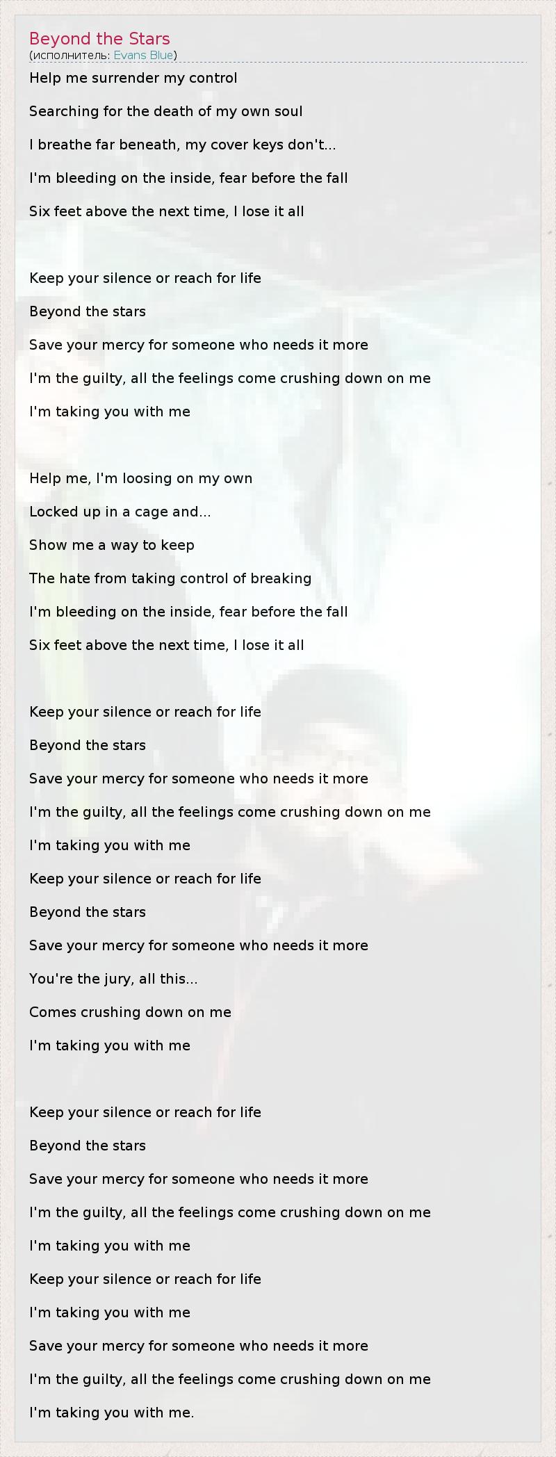А как ты думаешь, о чем песня "Beyond the Stars" ?