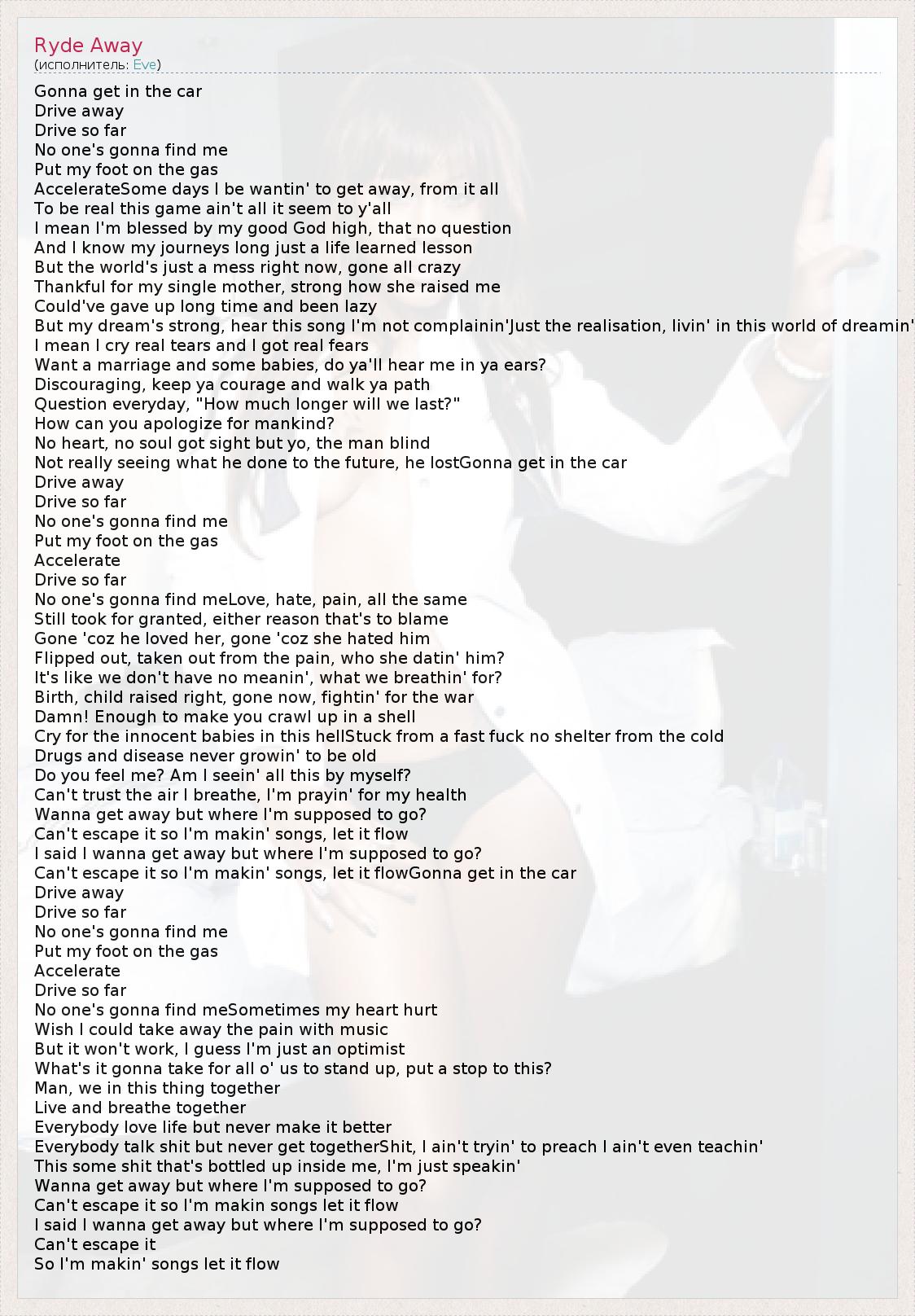 А как ты думаешь, о чем песня "Ryde Away" ?