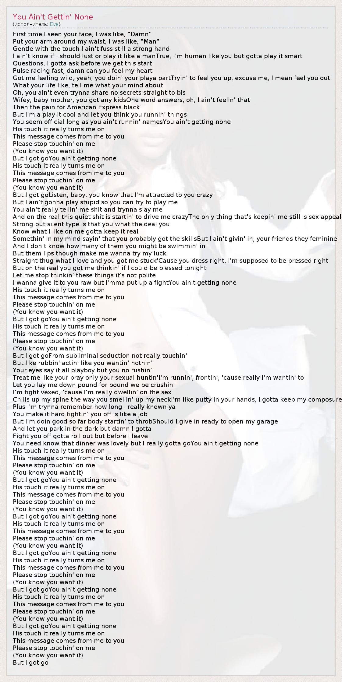 А как ты думаешь, о чем песня "You Ain't Gettin' None" ?