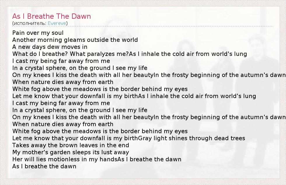 А как ты думаешь, о чем песня "As I Breathe The Dawn" ?