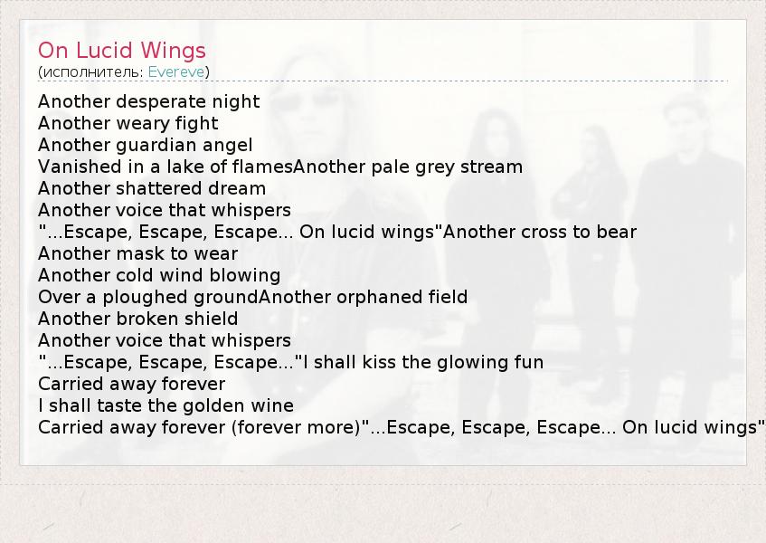 А как ты думаешь, о чем песня "On Lucid Wings" ?
