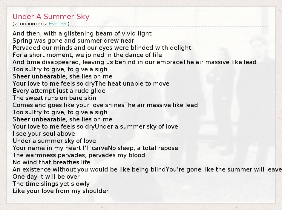А как ты думаешь, о чем песня "Under A Summer Sky" ?