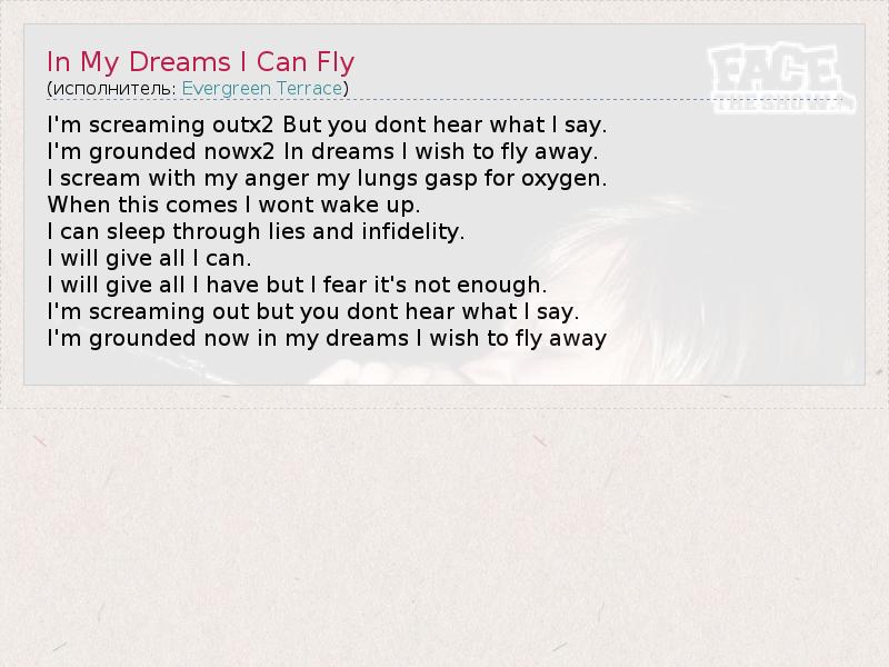 А как ты думаешь, о чем песня "In My Dreams I Can Fly" ?