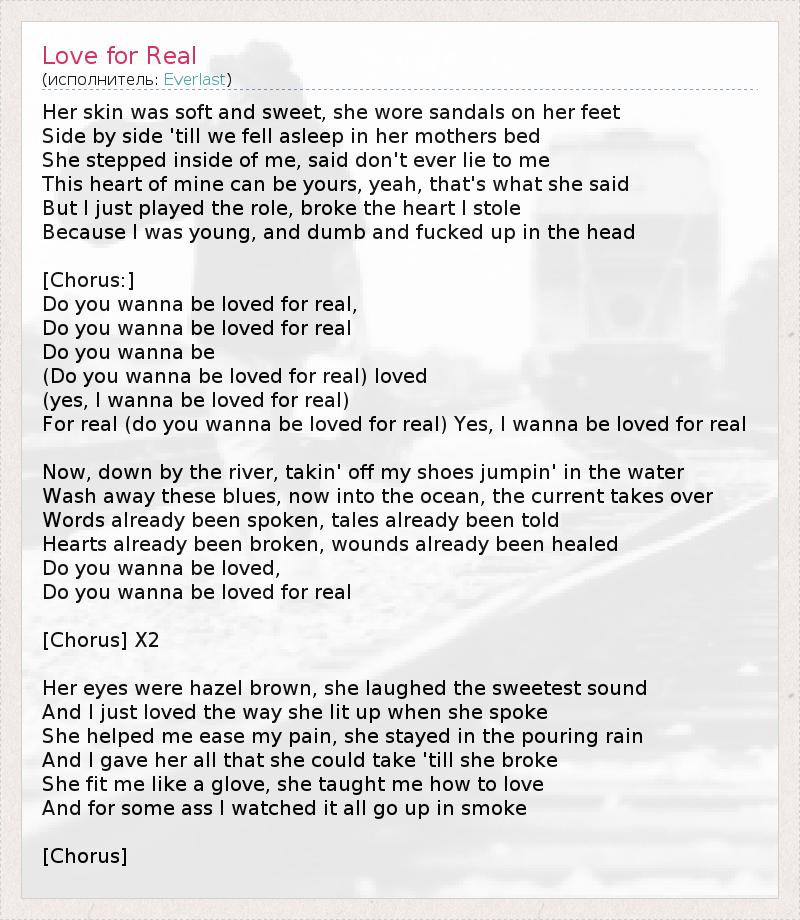 For real (do you wanna be loved for real) Yes, I wanna be loved for real