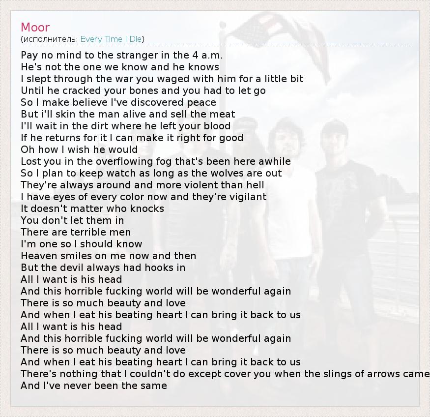 Это интересно:Metalcore-квинтет «Every Time I Die» из Буффало был сформирован зимой 1998 года. Возглавляемый в то время братьями Кейтом (Keith, вокал) и Джорданом Бакли (Jordan Buckley, гитара), состав на тот момент состоял также из гитариста Эндр Уильямса (Andrew Williams), бас-гитариста Джона МакКарти (John McCarthy) и барабанщика Майкла Новака (Michael "Ratboy" Novak). За время первого короткого тура по Нью-Йорку и Канаде молодую группу заметил... продолжение