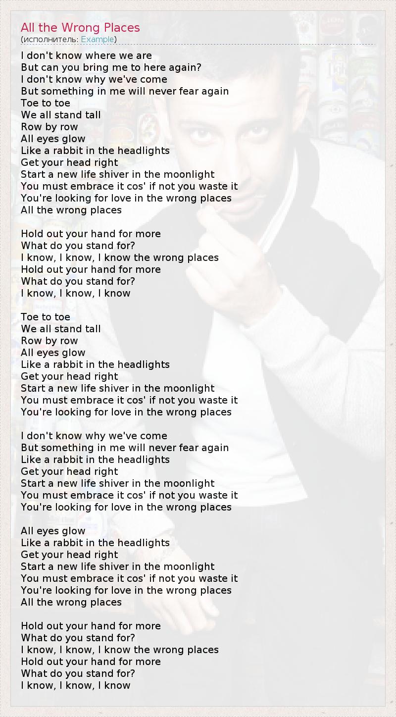 ГлавнаяИсполнителиExampleAll the Wrong Places