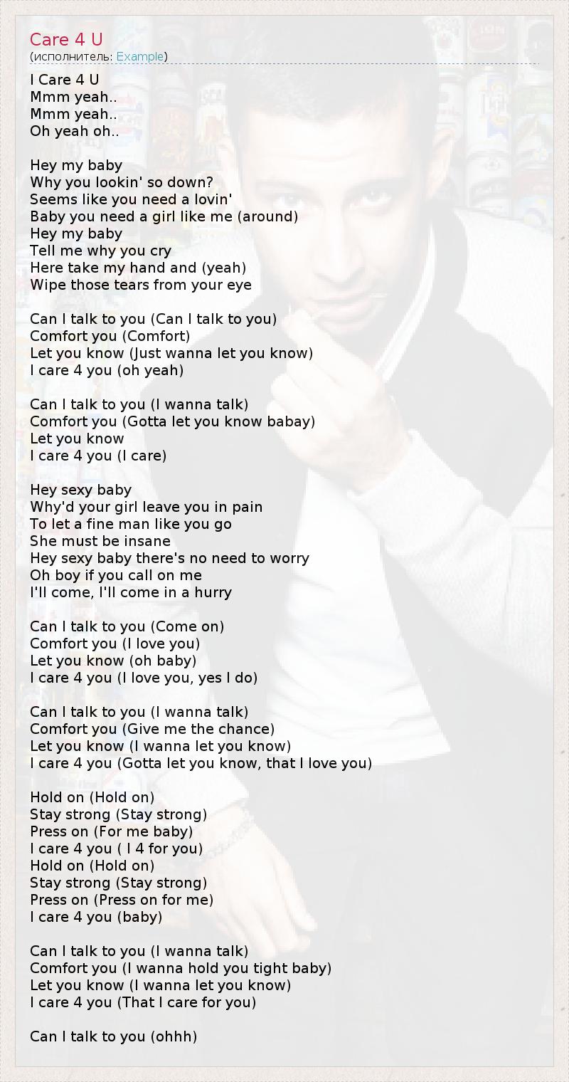 А как ты думаешь, о чем песня "Care 4 U" ?