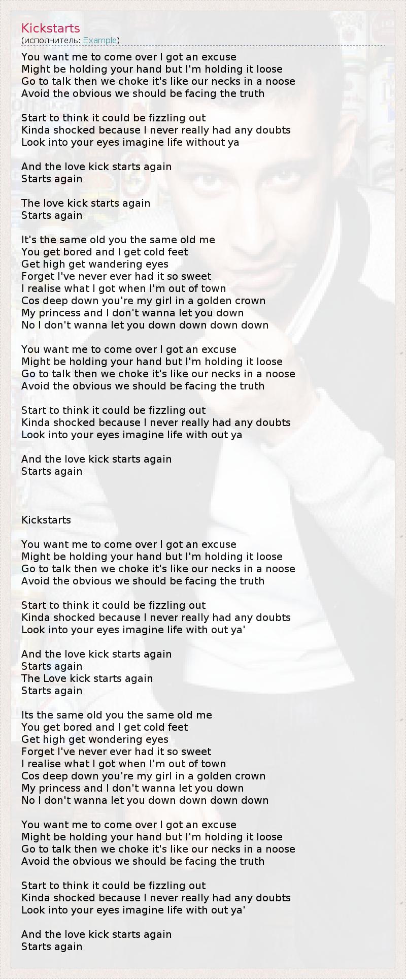А как ты думаешь, о чем песня "Kickstarts" ?
