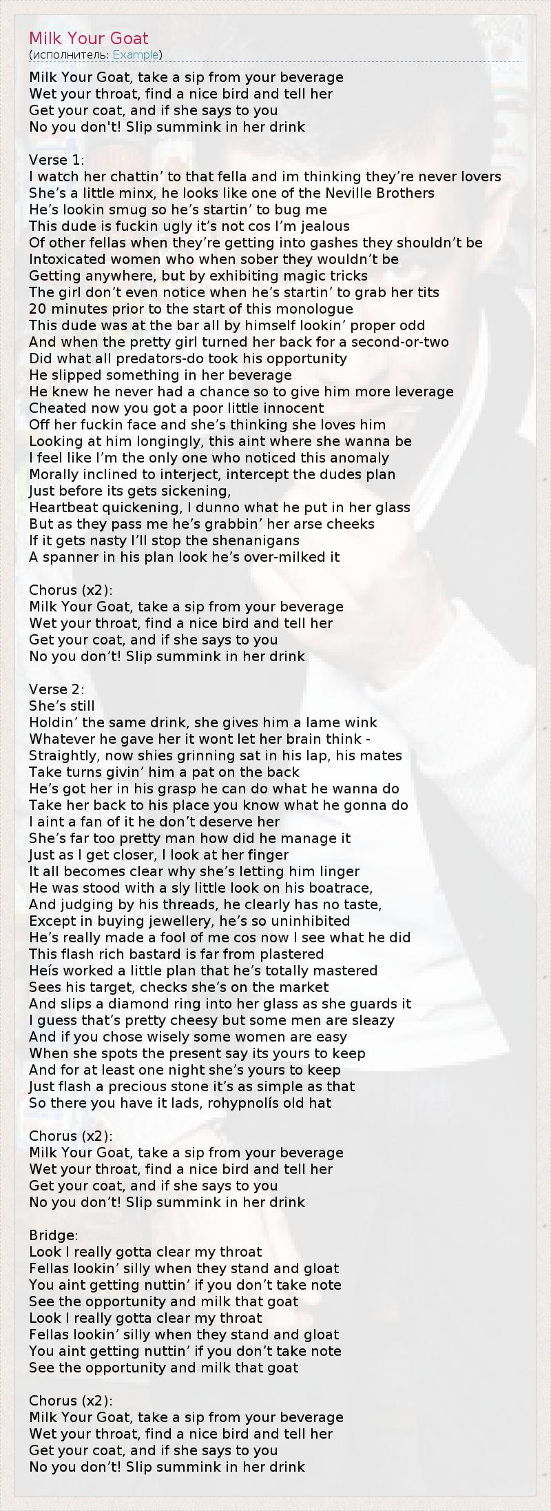 А как ты думаешь, о чем песня "Milk Your Goat" ?