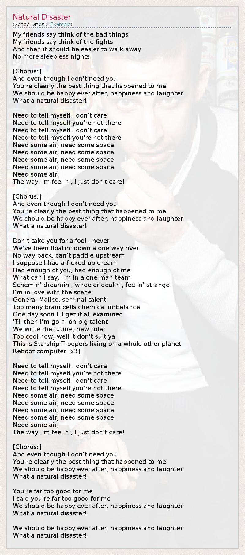 А как ты думаешь, о чем песня "Natural Disaster" ?
