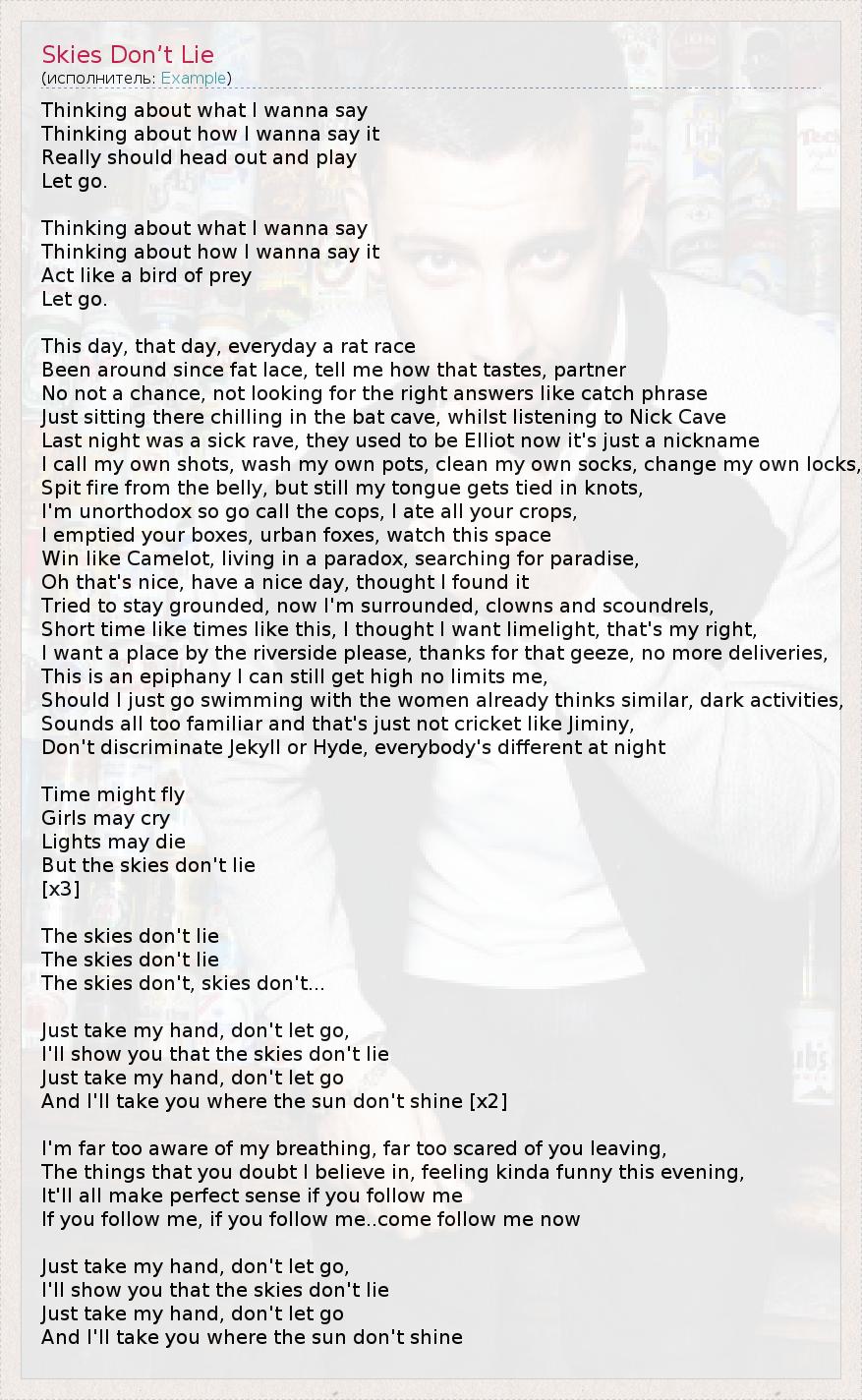 А как ты думаешь, о чем песня "Skies Don’t Lie" ?