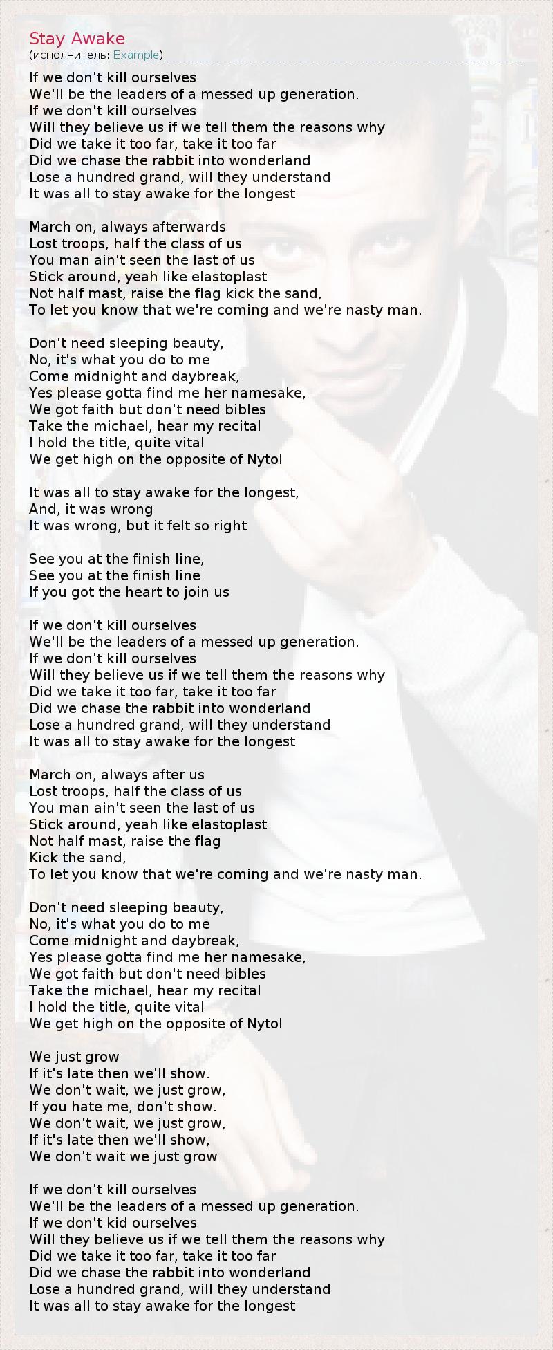 А как ты думаешь, о чем песня "Stay Awake" ?