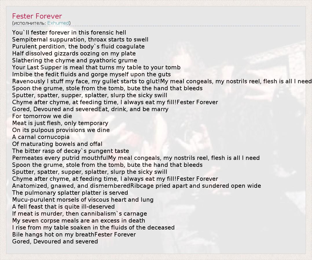 А как ты думаешь, о чем песня "Fester Forever" ?