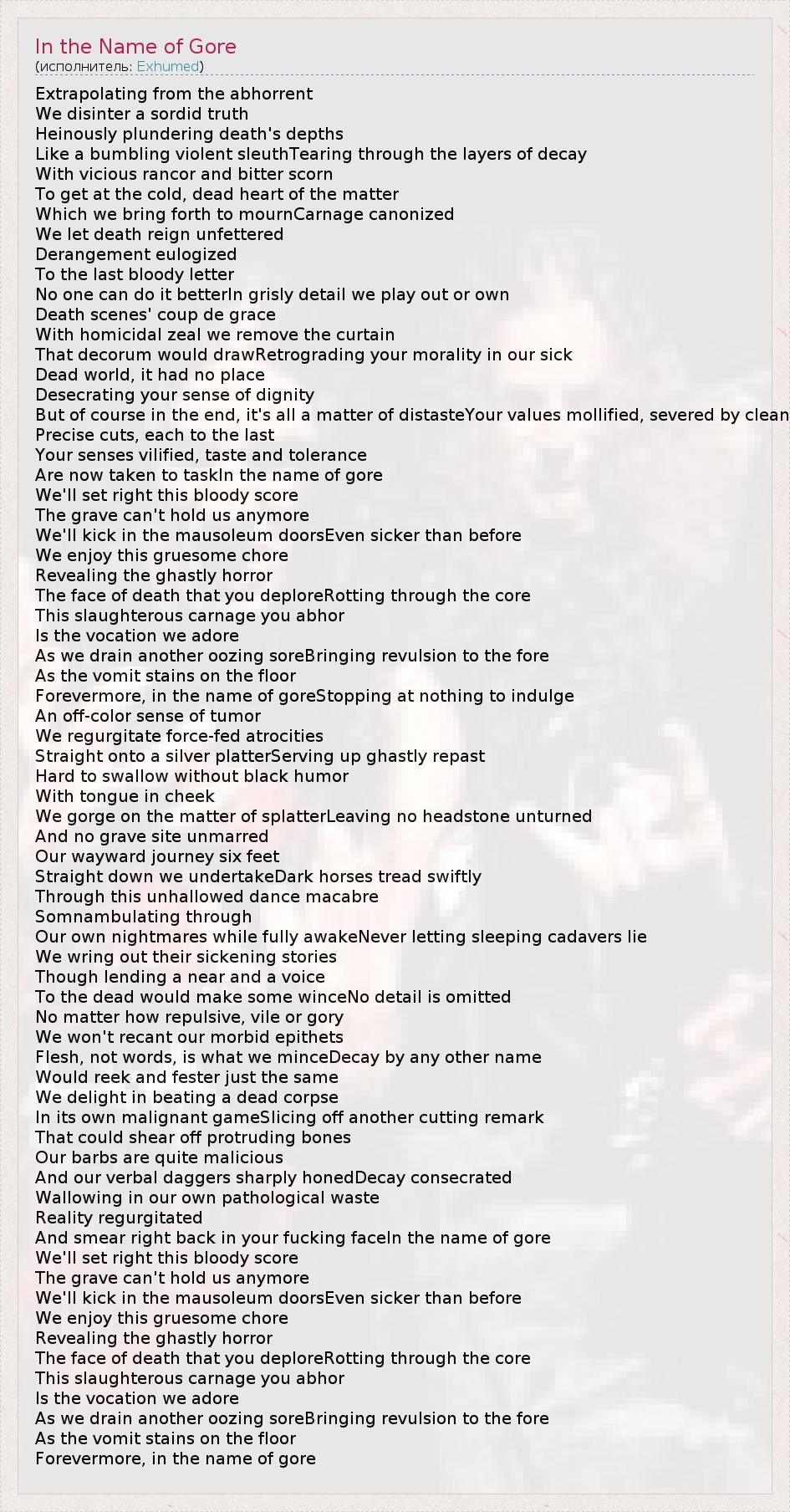 А как ты думаешь, о чем песня "In the Name of Gore" ?