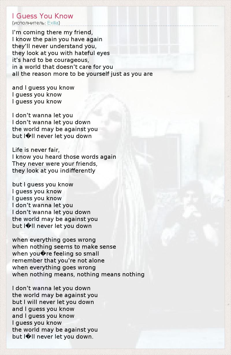 А как ты думаешь, о чем песня "I Guess You Know" ?