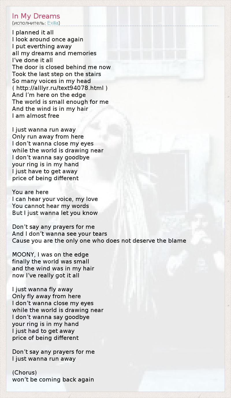 А как ты думаешь, о чем песня "In My Dreams" ?