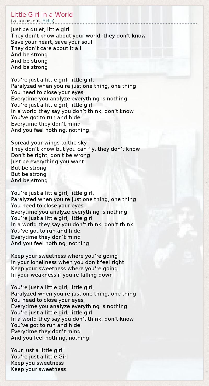А как ты думаешь, о чем песня "Little Girl in a World" ?