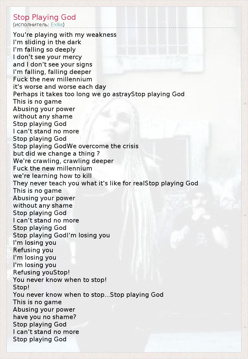 А как ты думаешь, о чем песня "Stop Playing God" ?
