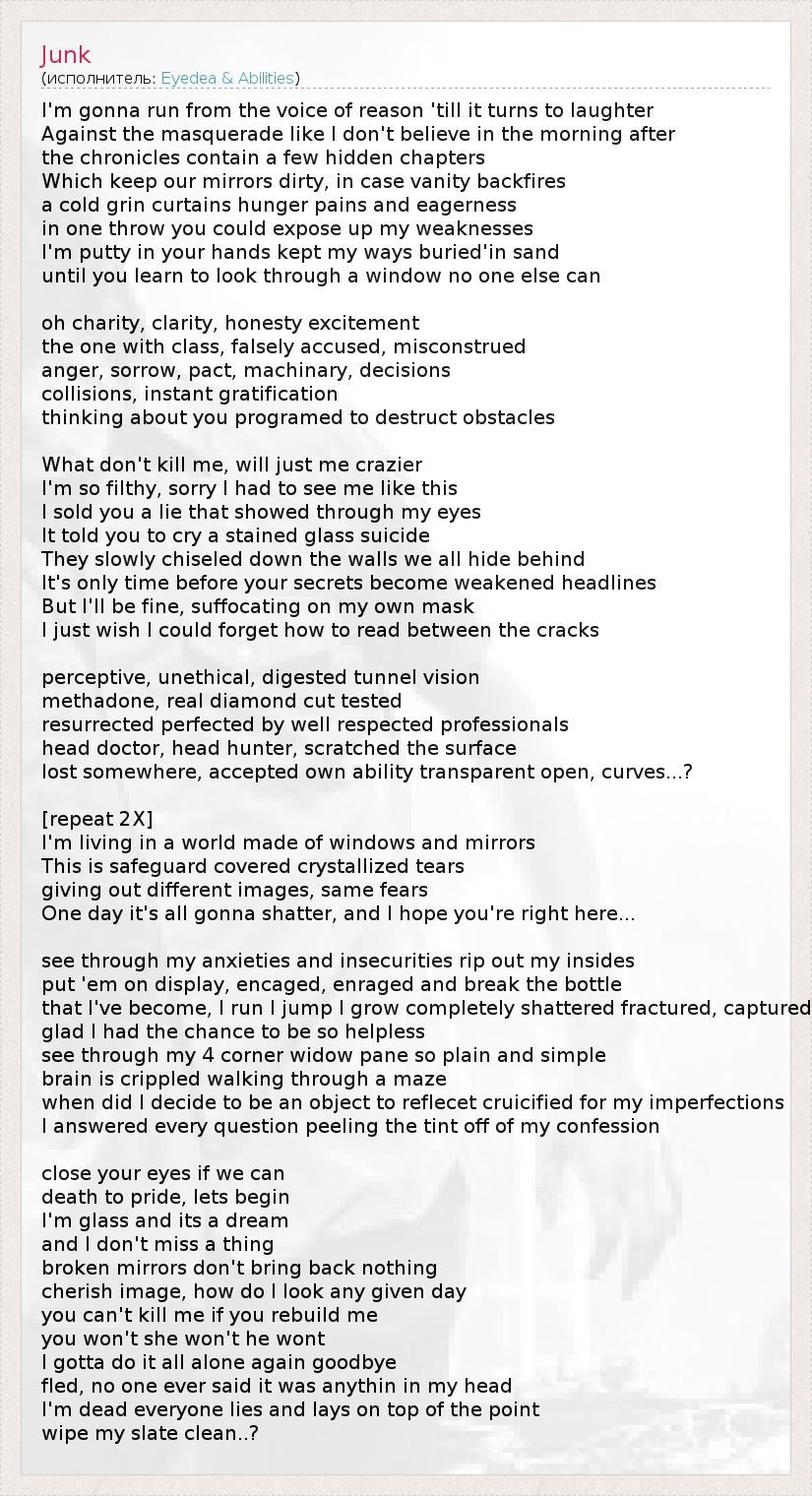 А как ты думаешь, о чем песня "Junk" ?