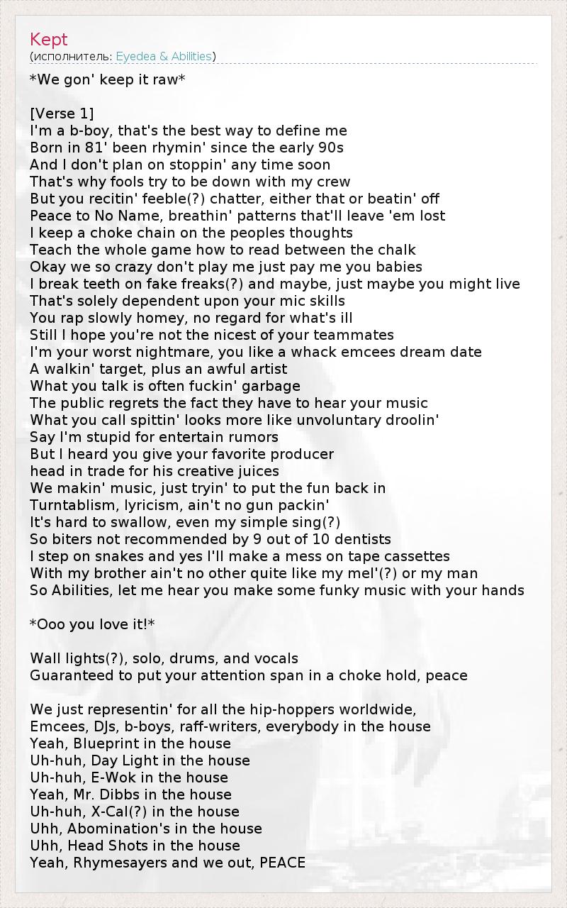 А как ты думаешь, о чем песня "Kept" ?