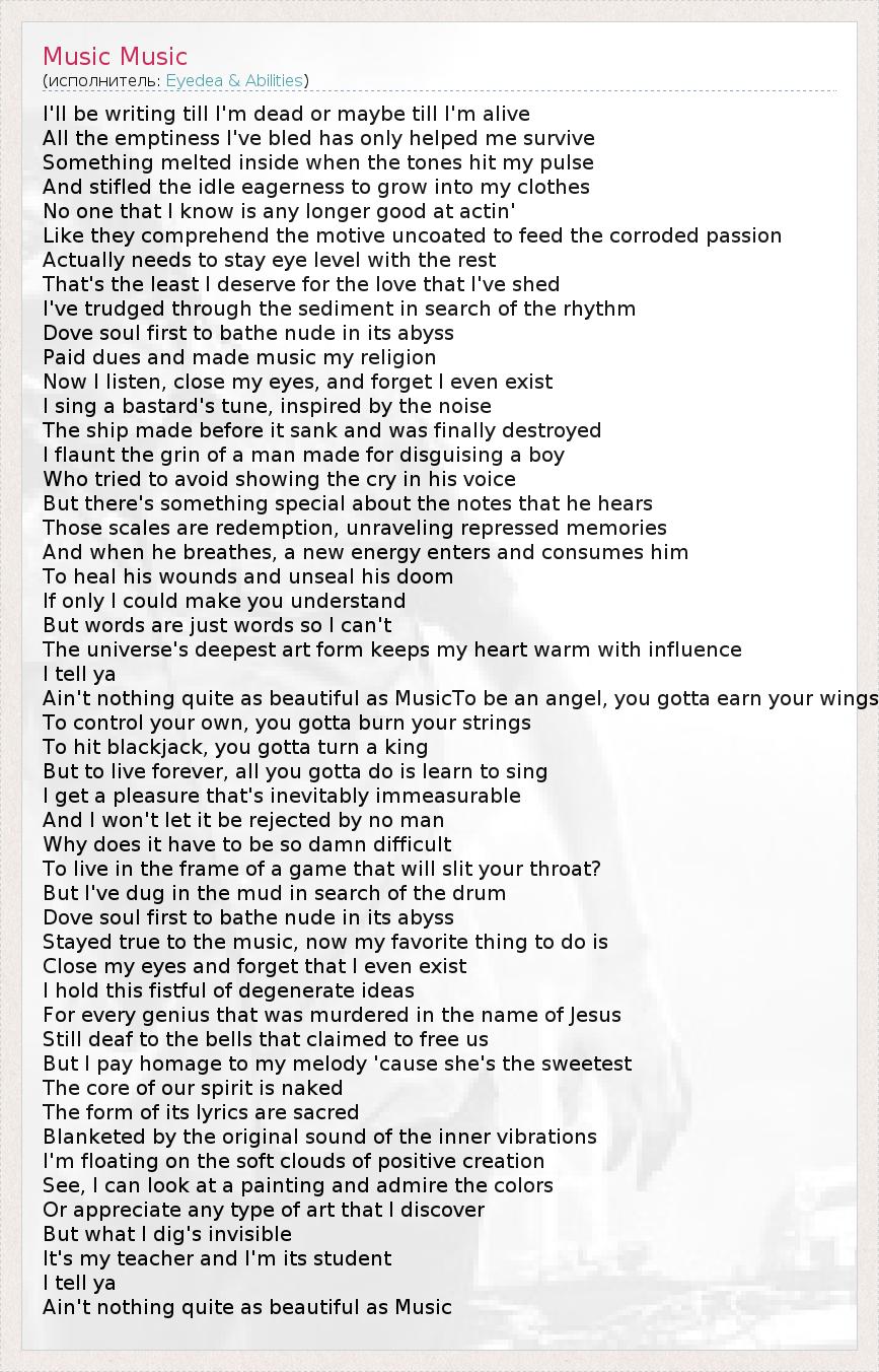 Это интересно:«Eyedea & Abilities» - одни из наиболее влиятельных представителей современного независимого рэпа. DJ Abilities (Gregory Keltgen) и МС Eyedea (Micheal Larsen) начали сотрудничать ещё в первой половине 90-х годов. Вначале дуэт назывался «Sixth Sense», позже сменив название на «Eyedea & Abilities». Довольно быстро дуэт стал знаменит в среде поклонников андеграунда благодаря социально-философским текстам Eyedea и экспериментальной... продолжение