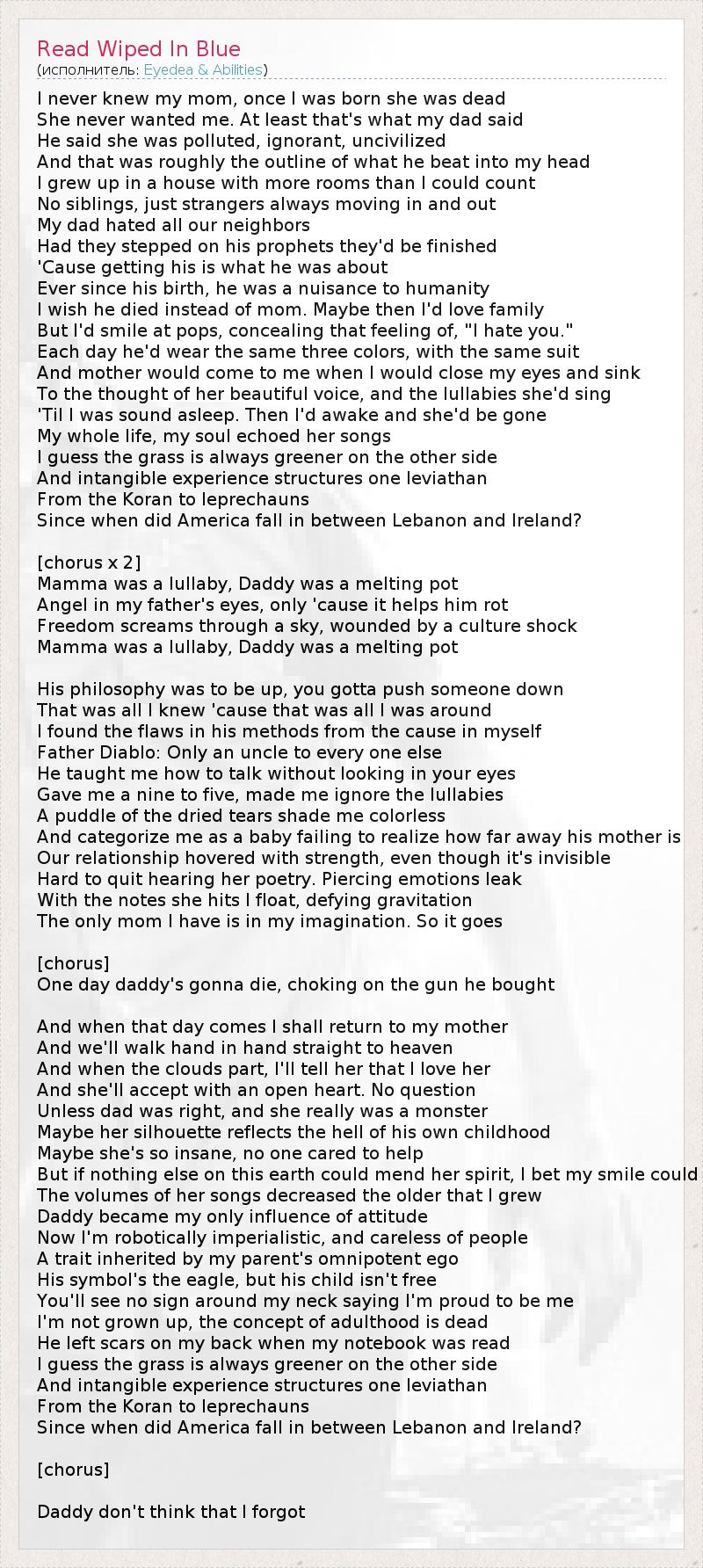 А как ты думаешь, о чем песня "Read Wiped In Blue" ?