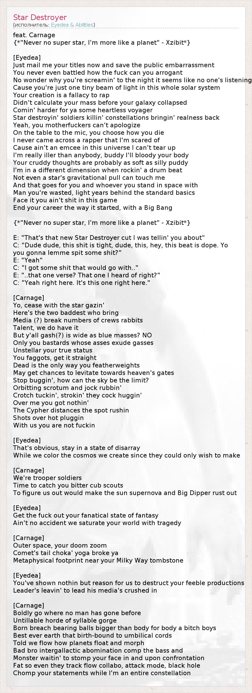 А как ты думаешь, о чем песня "Star Destroyer" ?