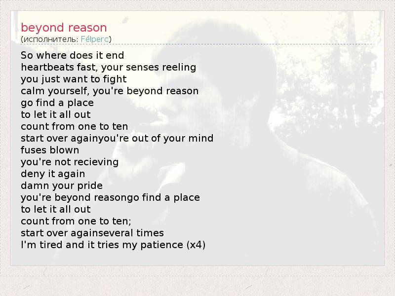 А как ты думаешь, о чем песня "beyond reason" ?