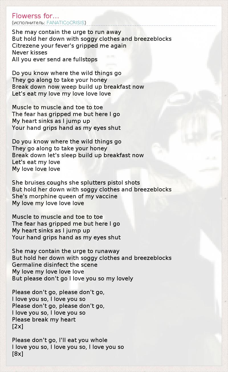 But please don't go I love you so my lovely
