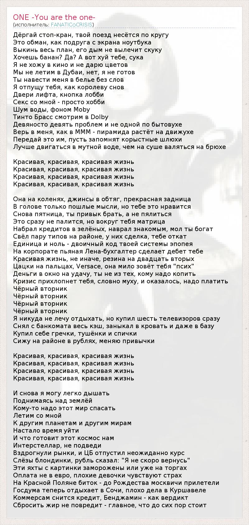 А как ты думаешь, о чем песня "ONE -You are the one-" ?