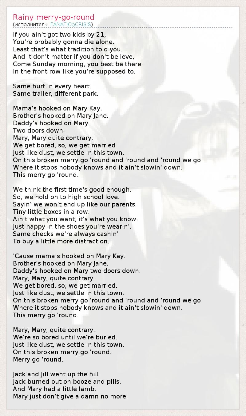 А как ты думаешь, о чем песня "Rainy merry-go-round" ?