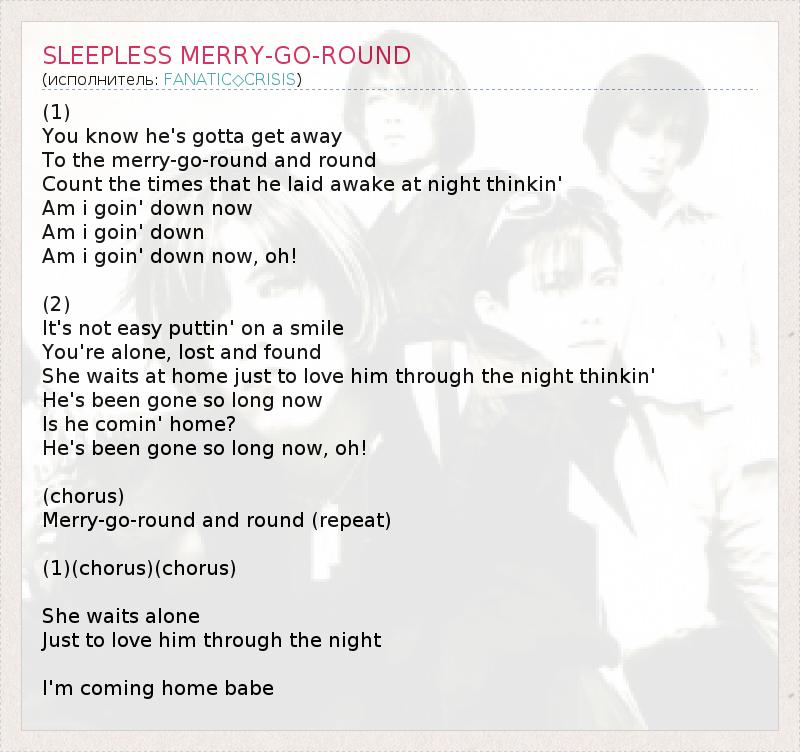 А как ты думаешь, о чем песня "SLEEPLESS MERRY-GO-ROUND" ?