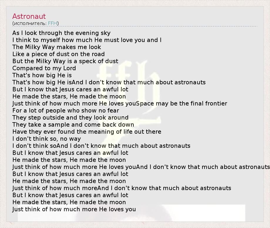 Just think of how much more He loves youAnd I don't know that much about astronauts
