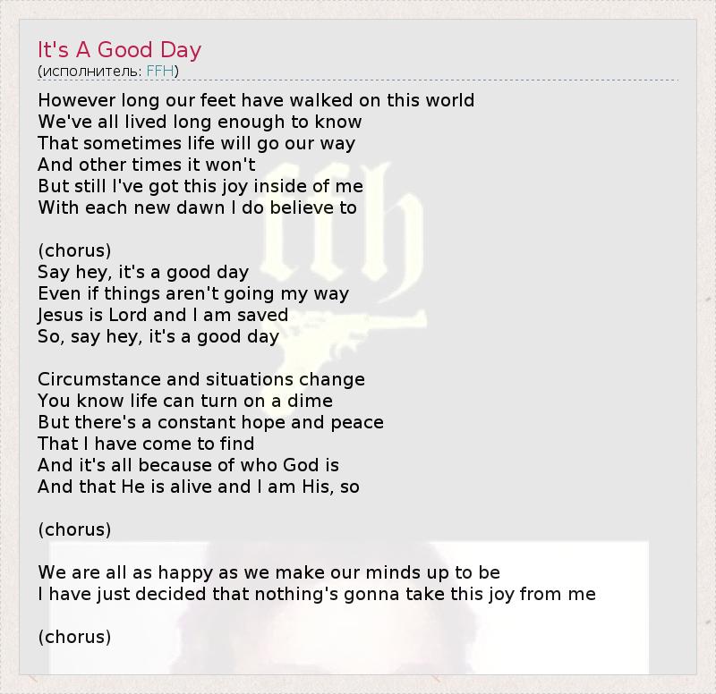 А как ты думаешь, о чем песня "It's A Good Day" ?
