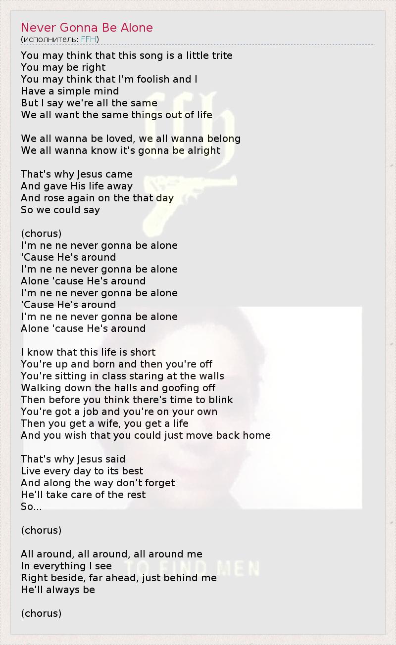 А как ты думаешь, о чем песня "Never Gonna Be Alone" ?