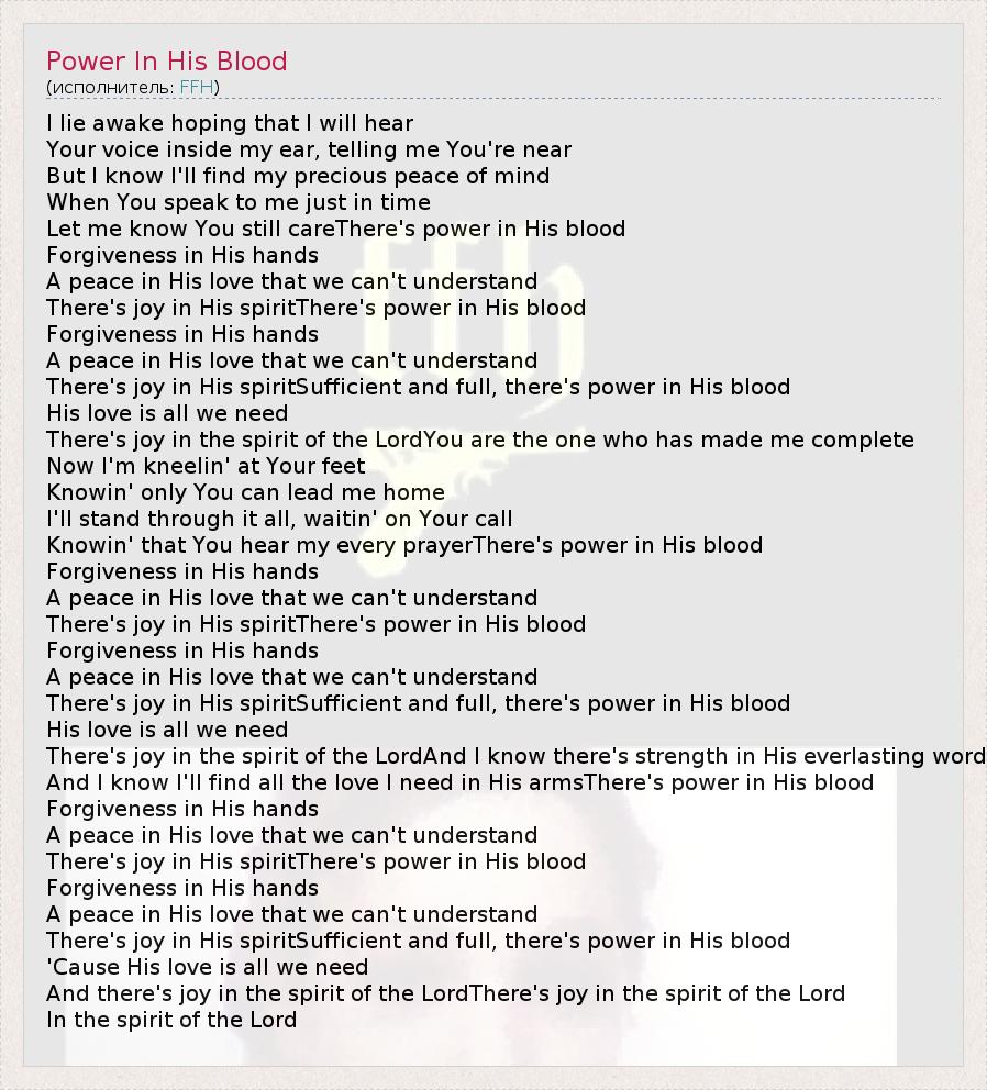 А как ты думаешь, о чем песня "Power In His Blood" ?