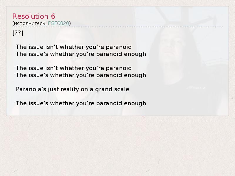 А как ты думаешь, о чем песня "Resolution 6" ?