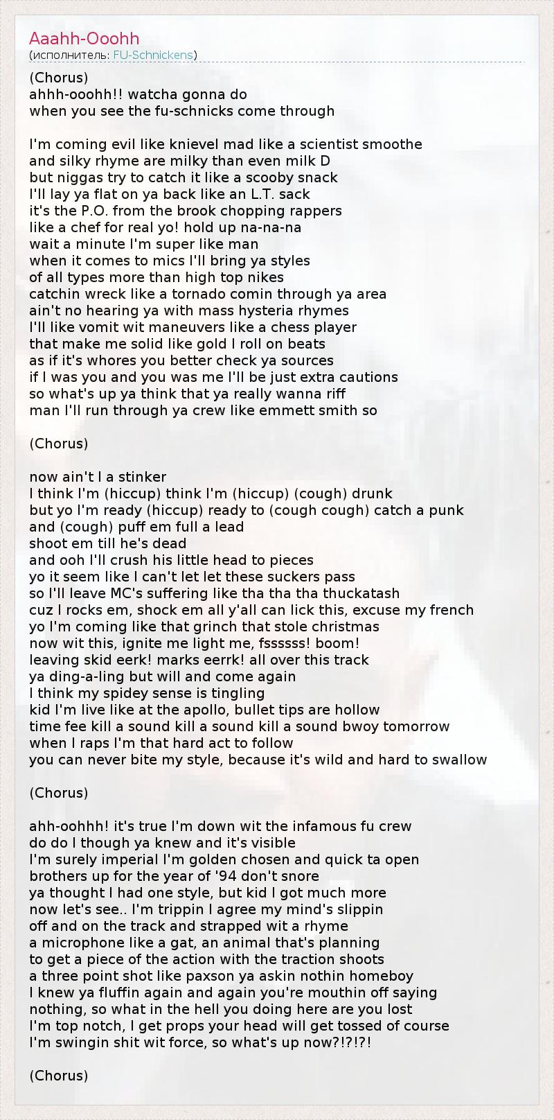 А как ты думаешь, о чем песня "Aaahh-Ooohh" ?